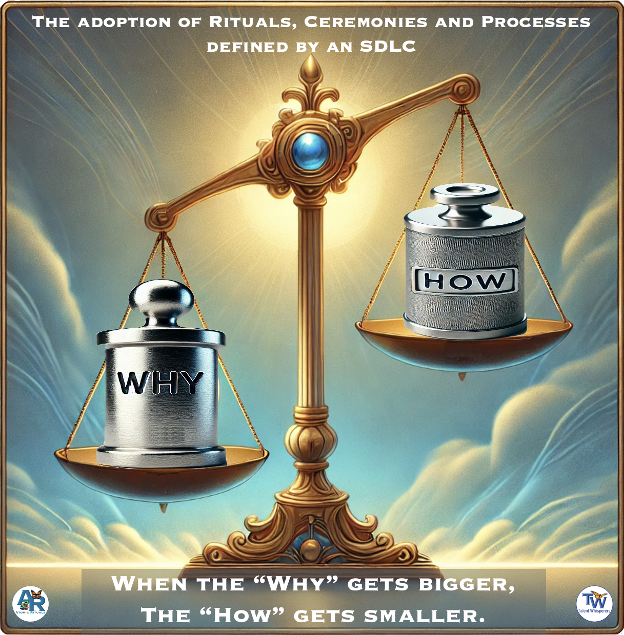All too often have I seen a struggle, even fierce battles, with regard to the adoption of rituals, ceremonies, systems, processes or rules. The most common barrier to adoption comes when they are handed down like an edict that must be followed. Sometimes non-adherence comes with the threat of being fired. Those whose are thus having these rituals or ceremonies thrust upon them feel they are being constrained and told how they should do their jobs and lives their lives at work.